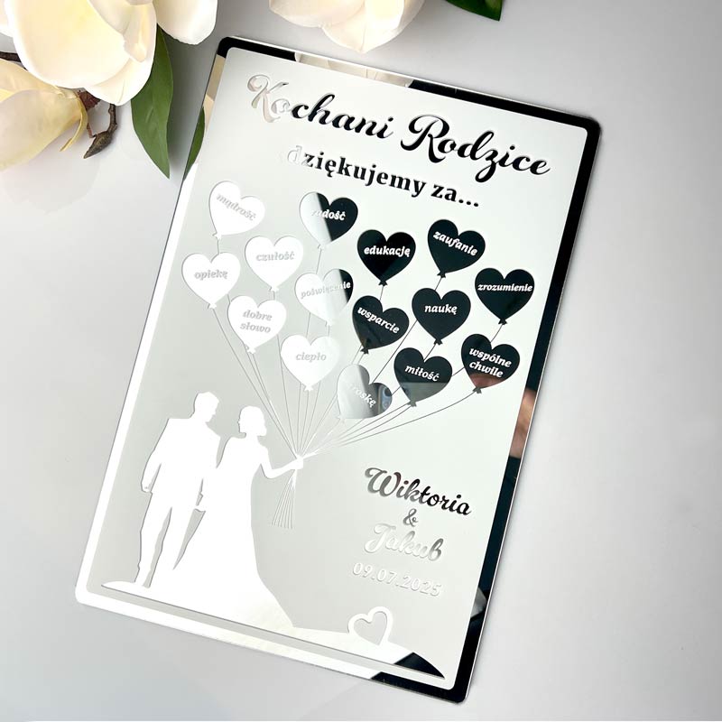 Nowoczesne podziękowania ślubne z nadrukiem UV na lustrzanej