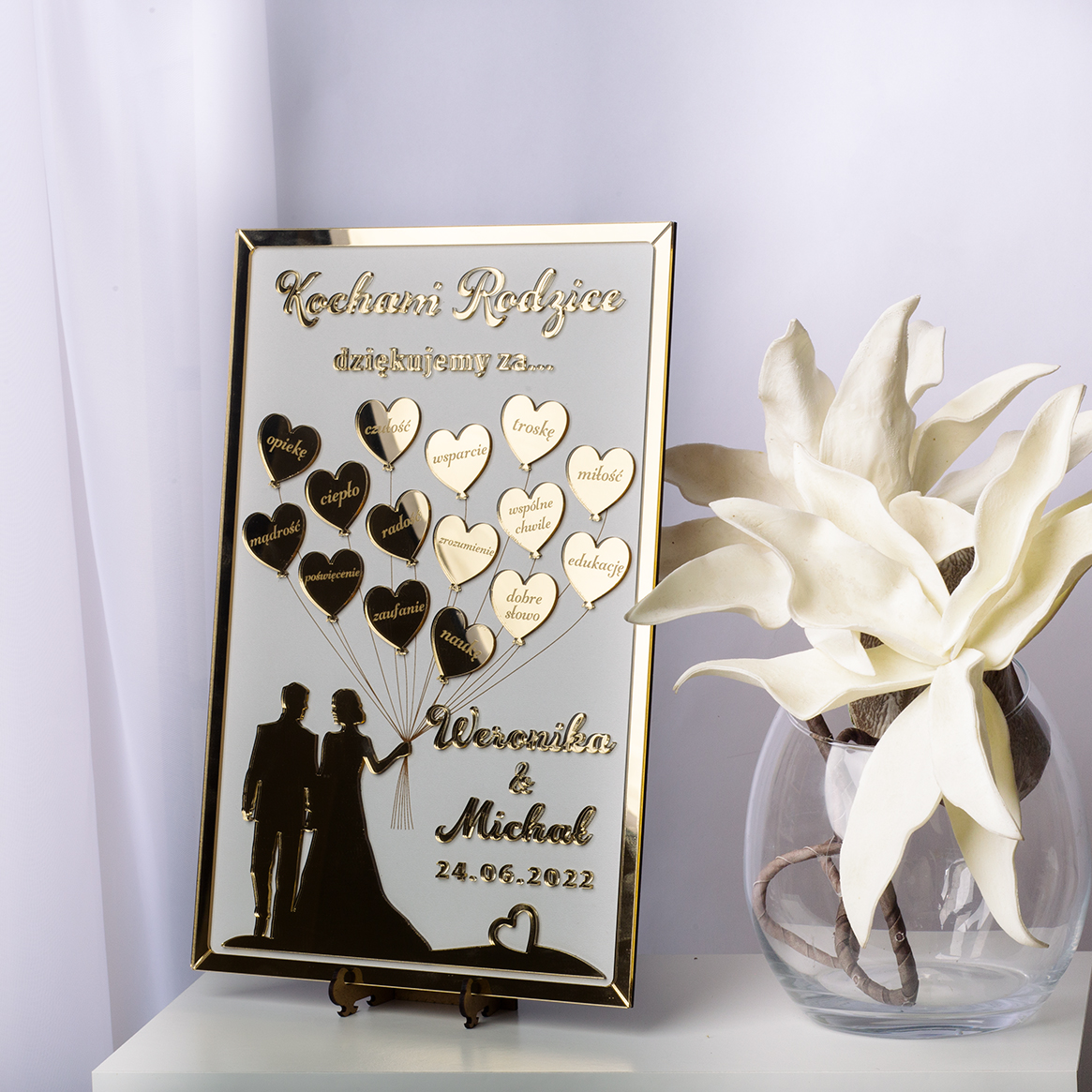 rodziców, czy mniejsze upominki dla gości, wykonane są z wysokiej jakości pleksi, która dzięki