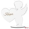 Aniołki wycinamy z wytrzymałej białej płyty HDF lub sklejki o grubości 3 mm, a napis jest grawerowany bezpośrednio na materiale.