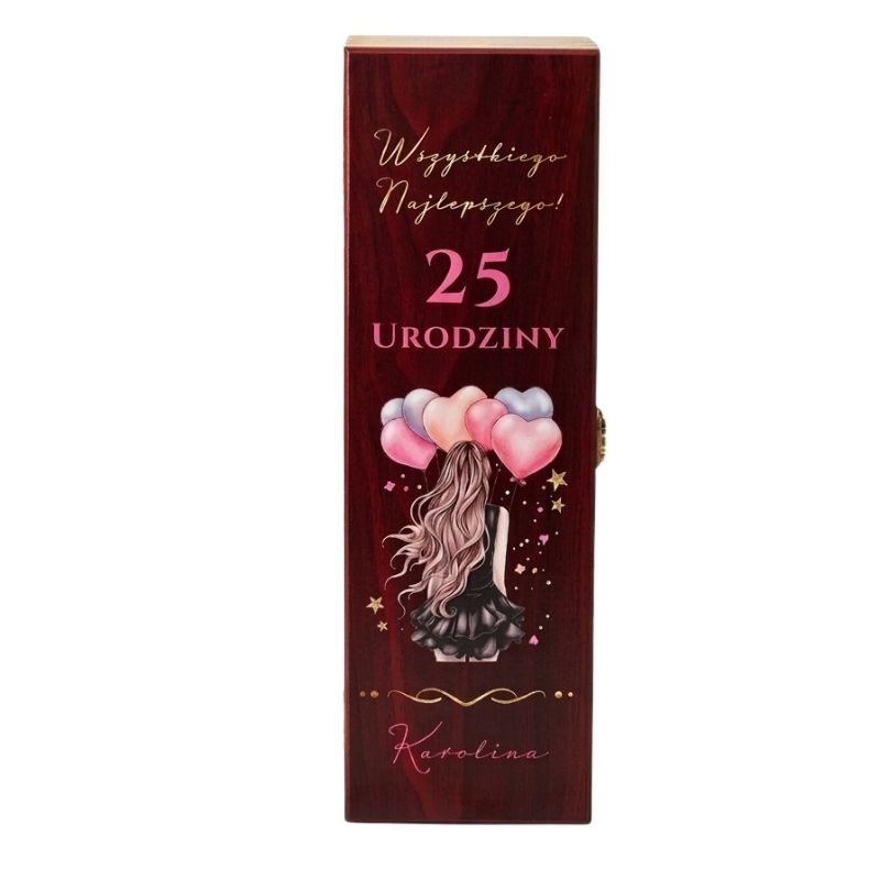 W pudełku jest też miejsce na jedną butelkę ulubionego wina. Pamiętaj: Butelka wina nie jest dołączona do zestawu. Personalizowany nadruk na wieku jest trwały i nie blaknie.