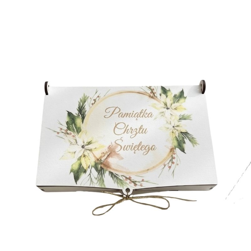 Elegancka Pamiątka Chrztu Świętego Kasetka na Pieniądze Wianuszek Kwiatów MD1844