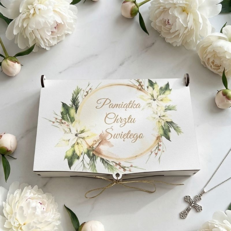 Elegancka pamiątka Chrztu Świętego dla dziewczynki i chłopca w formie trwałego pudełka