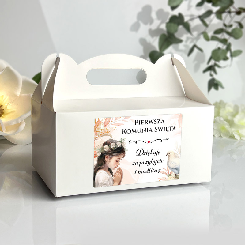 Naklejki etykiety na pudełko na ciasto komunijne 10 szt, sprawdź ofertę pudełek na ciasto komunijne oraz dekoracji sali na komunię.