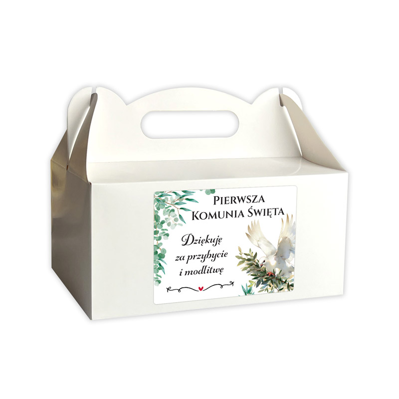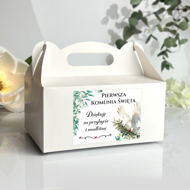 Naklejki etykiety na pudełko na ciasto komunijne 10 szt, sprawdź ofertę pudełek na ciasto komunijne oraz dekoracji sali na komunię.