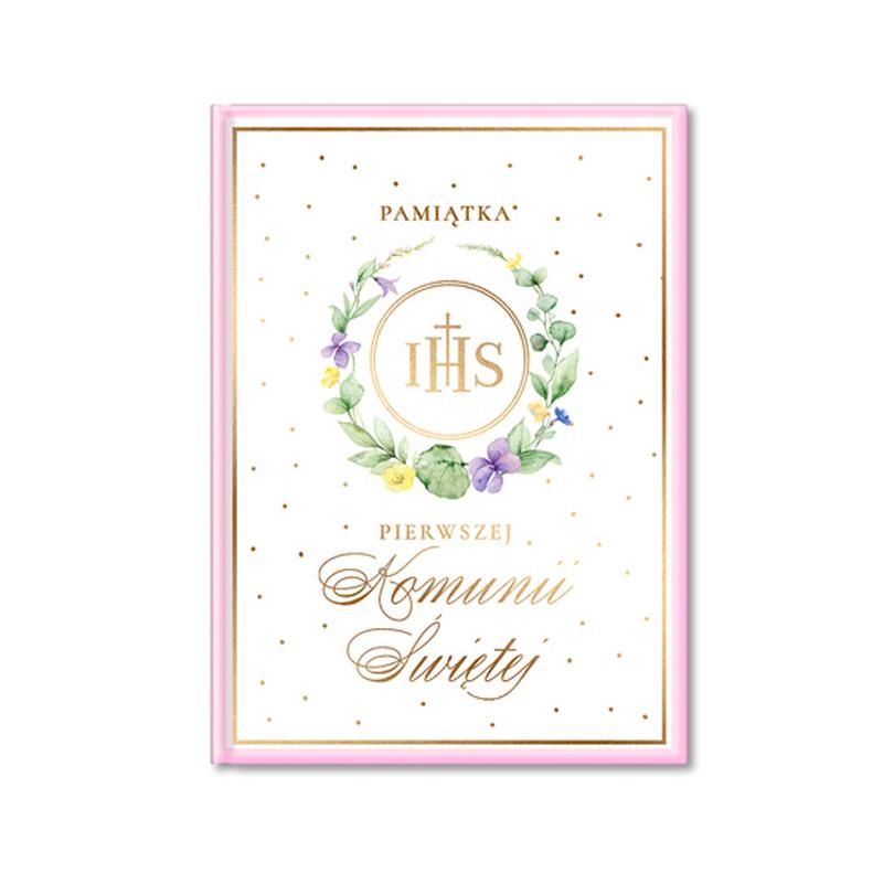 Książeczka komunijna pamiątka komunijna dla dziewczynki – Wyjątkowy Upominek na Pierwszą Komunię Świętą ze złotymi napisami