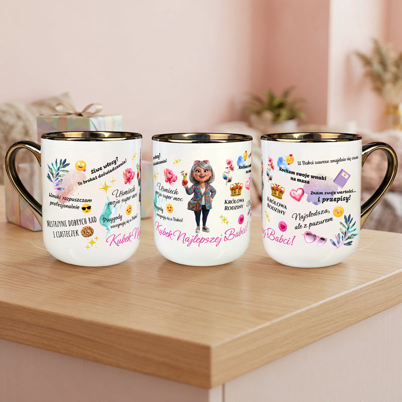 Nasz wyjątkowy kubek dla babci to uniwersalny prezent na każdą okazję. Sprawdzi się doskonale jako prezent urodzinowy dla babci, na Dzień Babci, święta Bożego Narodzenia czy jako upominek „just because”. Starannie dobrane napisy i różne grafiki do wyboru sprawiają, że kubek nabiera unikalnego charakteru. Każda babcia poczuje się doceniona, a kubek stanie się jej codziennym towarzyszem – zarówno przy porannej kawie, jak i popołudniowej herbacie. Dodatkowo, dzięki pięknemu designowi i sentencjom, kubek świetnie prezentuje się na stole, będąc także elementem dekoracyjnym w kuchni.