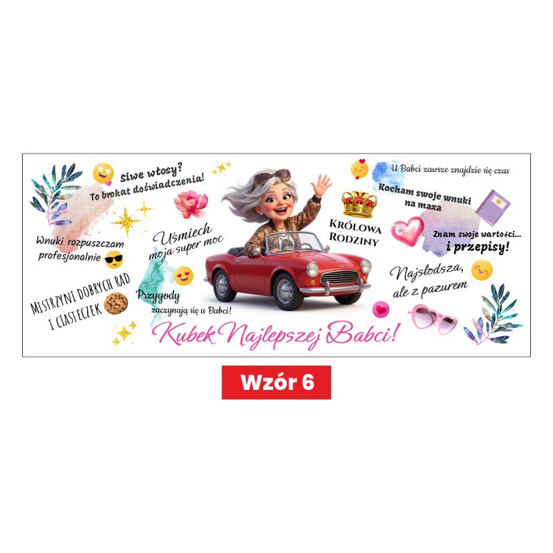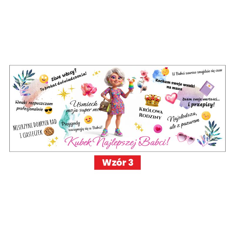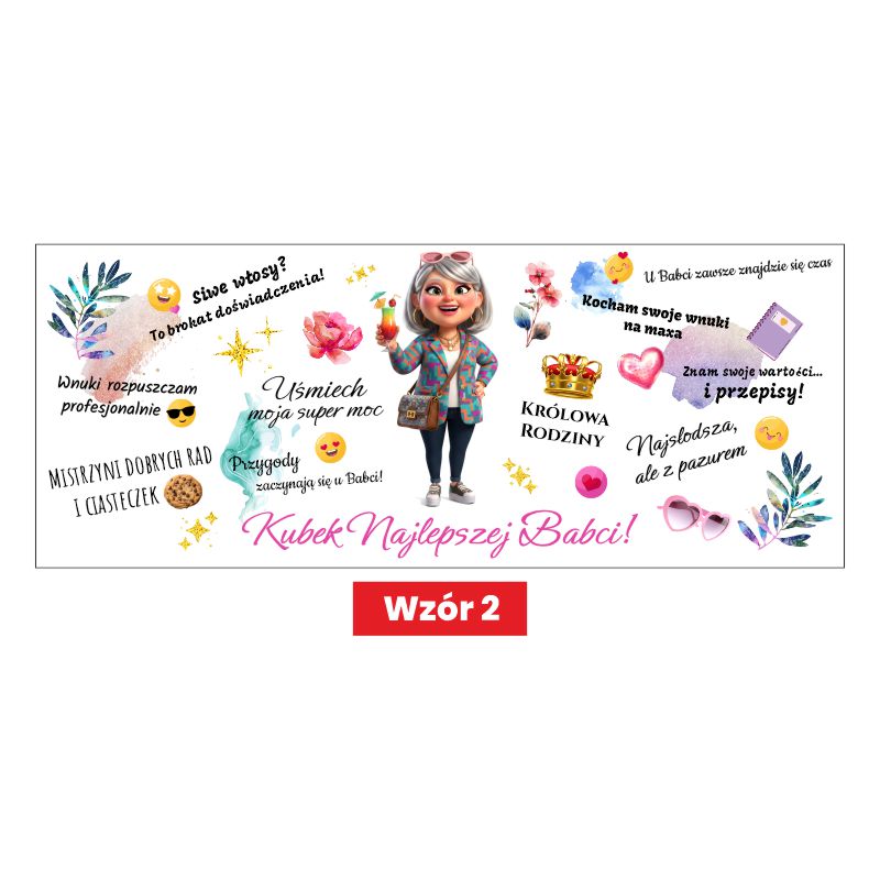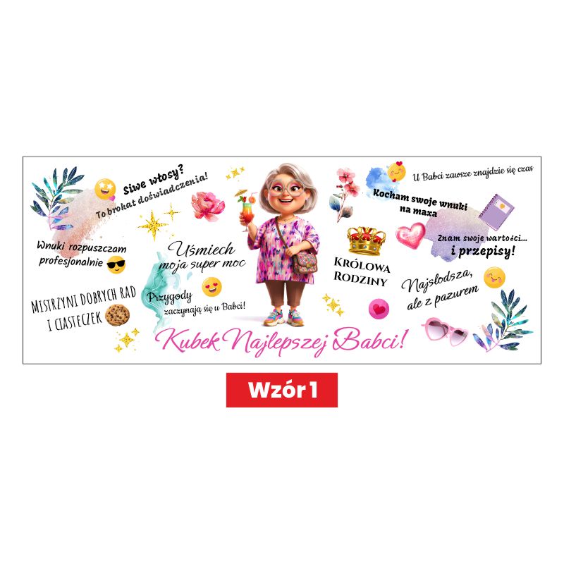 Nasz kubek z napisami dla babci to nie zwykły kubek – to mała dawka codziennego uśmiechu. Znajdziesz na nim sentencje takie jak: „U babci zawsze znajdzie się czas”, „Królowa rodziny” oraz „Mistrzyni dobrych rad i ciasteczek”. Każde z tych stwierdzeń podkreśla wyjątkową rolę babci w rodzinie i sprawia, że kubek staje się osobistym, sentymentalnym upominkiem. Taki kubek z dedykacją dla babci jest doskonałym sposobem, by pokazać wdzięczność i miłość w prosty, codzienny sposób. Dzięki różnym dostępnym grafikom możesz wybrać wersję idealnie pasującą do osobowości babci.