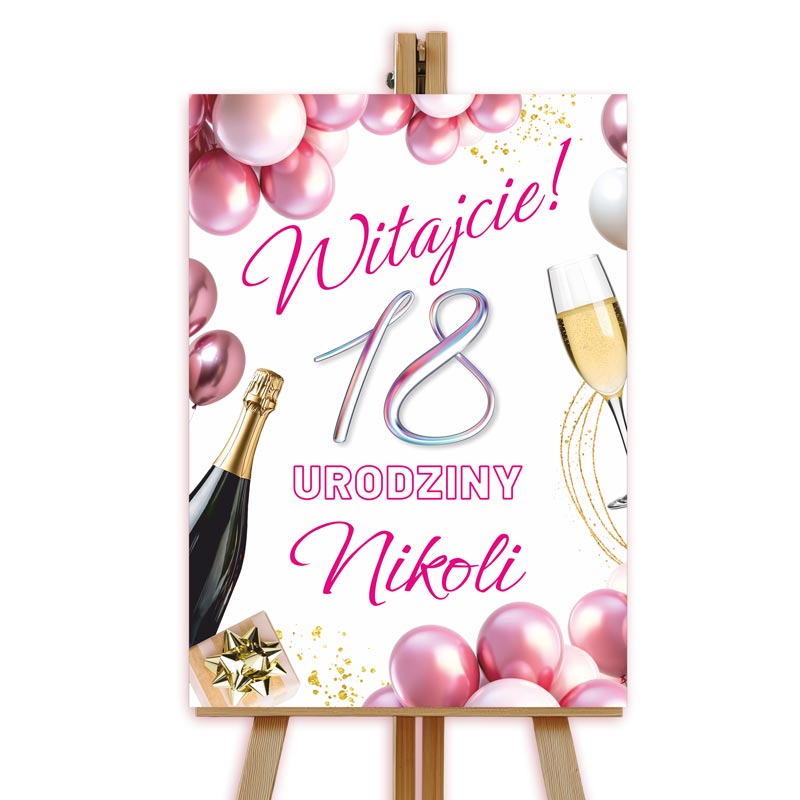 Nasza personalizowana urodzinowa tablica powitalna sprawi, że jubilat poczuje się wyjątkowo. Goście poczują się oczekiwani. Kompozycja jest nowoczesna i elegancka. Podkreśla wagę momentu wejścia w dorosłość. Ta ozdoba powitalna to klucz do udanego startu imprezy. Nadaje ton całemu wydarzeniu. Inwestujesz w jakość i dbałość o szczegóły. Postaw plakat przy wejściu. Nikt go nie przeoczy.
