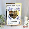 Do modelu można dokupić dodatkowo stojak lub mini sztalugę, w ofercie dostępne jest również specjalne pudełko z okienkiem, w które możemy zapakować podziękowanie. Można je dokupić w naszym sklepie w kategorii Dodatki komunijne – to opcja dodatkowo płatna. Zapraszamy również do obejrzenia Podziękowań dla Gości oraz Tablice powitalne komunia