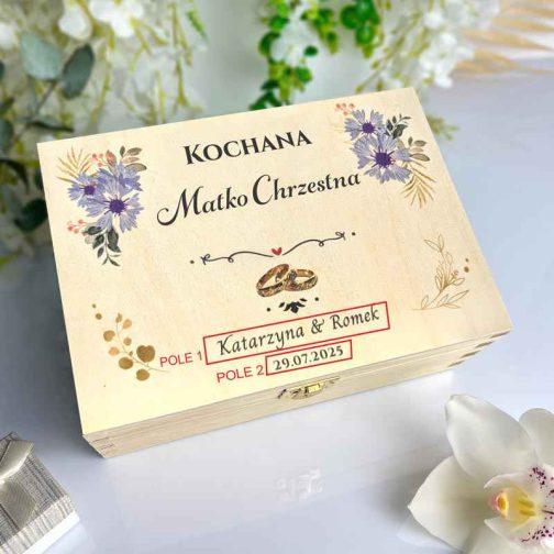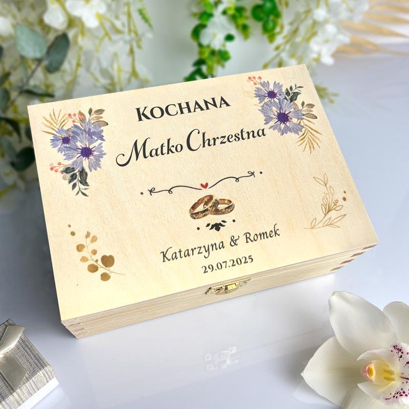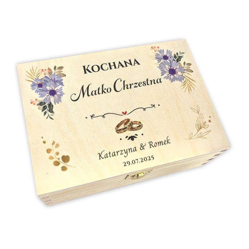 Drewniana herbaciarka z dedykacją dla Matki Chrzestnej — wyjątkowa pamiątka ślubna