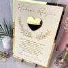 Podziękowanie dla rodziców z sercem z lustrzanej złotej pleksi, z grawerowanymi podziękowaniami – personalizowane imionami i datą ślubu.