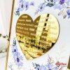 Centralnym elementem tej eleganckiej ramki jest złote serce, wykonane z błyszczącej pleksi, wypełnione krótkimi sentencjami pełnymi miłości i wdzięczności. Dziękujemy rodzicom za ich uśmiech, wsparcie, wychowanie i wszystkie niezapomniane chwile. To serce nie tylko emanuje elegancją, ale również symbolizuje głęboką wdzięczność za ich wkład w wyjątkowy dzień ślubu.