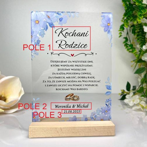Pomysł na Personalizowane Podziękowanie Dla Rodziców Ślubne Niebieskie Przezroczyste