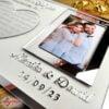 Podziękowanie dla rodziców z dużą ramą na zdjęcie z dodatkiem lustrzanego szkła akrylowego w kolorze Srebra – personalizowane imionami Pary Młodej i datą ślubu.