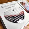Wyróżniającym elementem naszego produktu jest dodatek szkła akrylowego w subtelnych odcieniach srebra. Dodaje on elegancji i prestiżu, tworząc kontrast z lustrzaną pleksi, a każdy detal jest starannie dopracowany. Nasze Personalizowane Podziękowanie to więcej niż ramka. To sposób, by podziękować rodzicom za ich trud i miłość. Możliwość personalizacji, w tym dodania imion Pary Młodej i daty ślubu, nadaje pamiątce osobistą wartość.