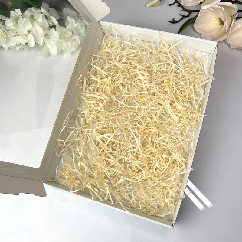 Uwaga: Przedmiotem aukcji jest samo pudełko – bez zawartości. Wstążka dekoracyjna oraz sianko drewniane widoczne na zdjęciach są opcją dodatkowo płatną i można je zakupić oddzielnie w naszej ofercie – na innych aukcjach.