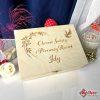Wykonane z wysokiej jakości drewna, pudełko nie tylko pięknie się prezentuje, ale jest też trwałe i solidne. Na górze pudełka znajduje się delikatny grawer  gałązek i gołąbka oraz napis "Chrzest Święty i Pierwszy Roczek" pod napisem umieszczone jest imię dziecka. Ten prosty, a jednocześnie głęboko symboliczny grawer przypomina o ważności i świętości przyjętego sakramentu. W środku pudełka mieści się miejsce na życzenia personalizowane. Możliwość dodania, od kogo pochodzi prezent, czyni tę pamiątkę jeszcze bardziej osobistą i wyjątkową.