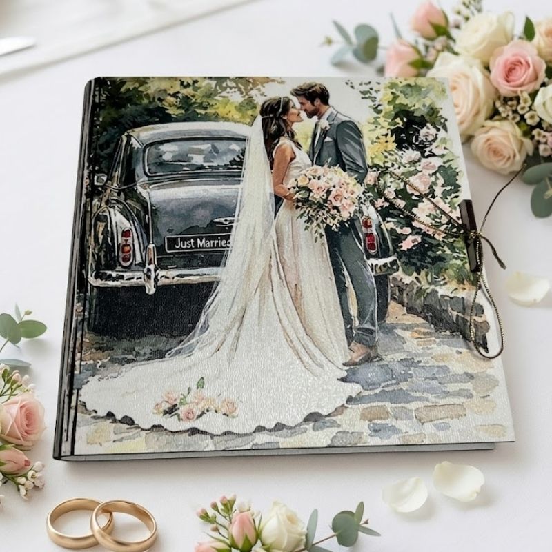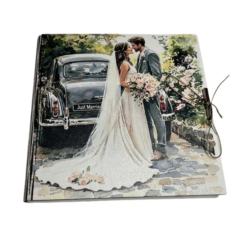Głównym atutem produktu jest kolorowy nadruk UV na wierzchu, który nanoszony jest zaawansowaną metodą nadruku uv. Na wieczku znajduje się romantyczna grafika – Młoda Para w różowym kabriolecie z napisem „Just Married” pod kwitnącymi drzewami. Dlaczego warto wybrać nadruk UV?