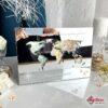 Ramka Mapa Świata Pleksi Lustrzana srebrna to niezwykłe połączenie wytworności i elegancji. Wykonana z lustrzanego pleksi o subtelnym srebrnym odcieniu, emanuje blaskiem, który przyciąga wzrok gości i sprawia, że stanowi wyjątkową dekorację. Jej unikalny design to hołd dla estetyki, który idealnie komponuje się z każdym stylem i tematyką weselną. Wymiary skarbonki 19x27 cm.