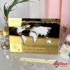 Ramka Mapa Świata Pleksi Lustrzana złota to niezwykłe połączenie wytworności i elegancji. Wykonana z lustrzanego pleksi o subtelnym złotym odcieniu, emanuje blaskiem, który przyciąga wzrok gości i sprawia, że stanowi wyjątkową dekorację. Jej unikalny design to hołd dla estetyki, który idealnie komponuje się z każdym stylem i tematyką weselną. Wymiary skarbonki 19x27 cm.