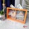 Skarbonka z napisem jest do postawienia oraz do powieszenia na ścianie.