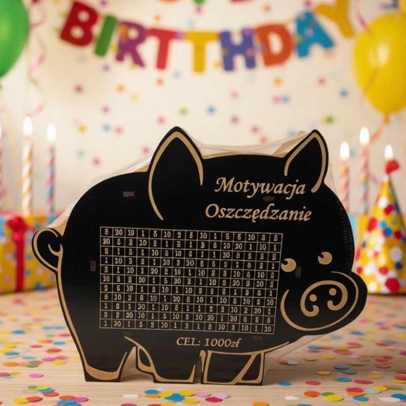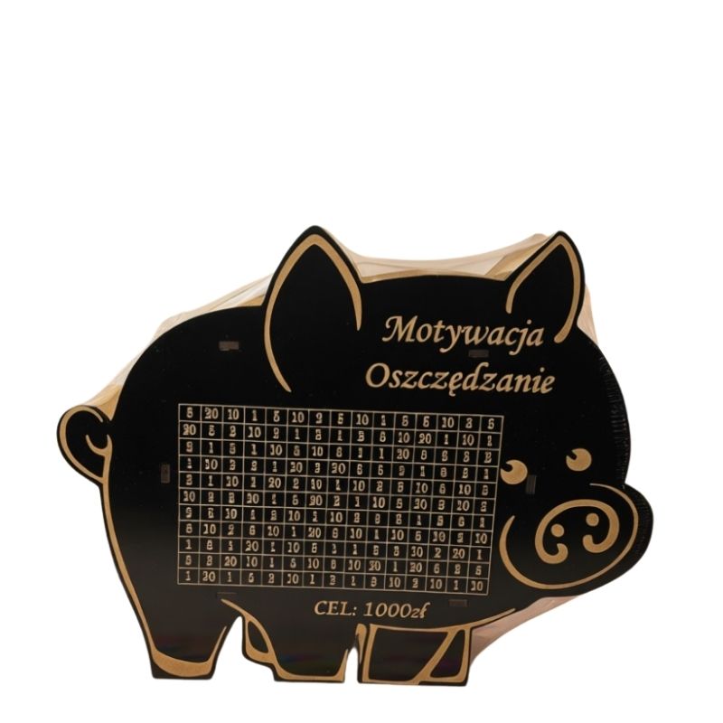 Kod produktu: Skarbonka wykreślanka świnka czarna hdf cel 1 000 zł