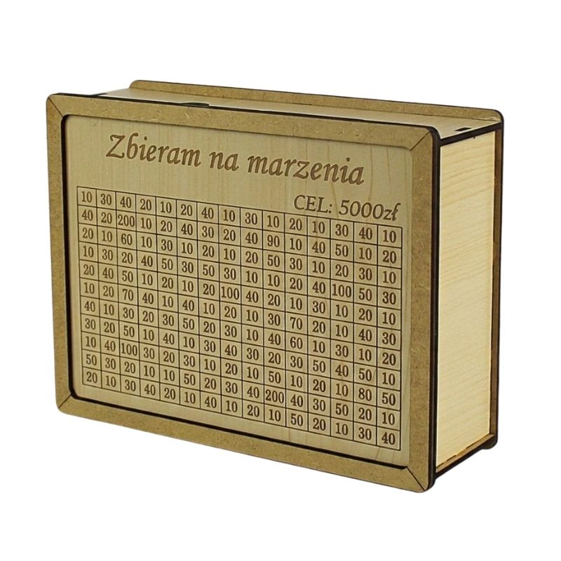 Kod produktu: Skarbonka wykreślanka prostokątna brązowa hdf cel 5 000 zł