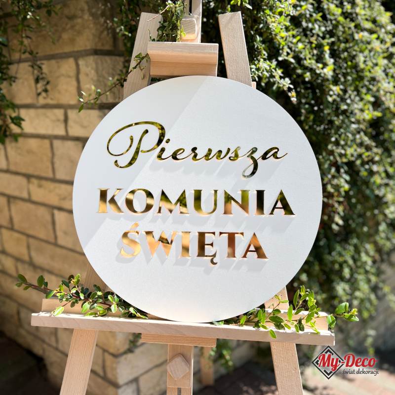 Tablica Powitalna na Komunię — Blask Złotej Pleksi w Kształcie Koła