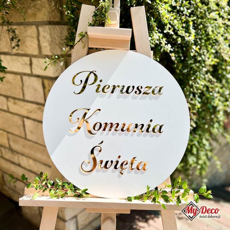 Tablica Powitalna na Komunię — Blask Złotej Pleksi w Kształcie Koła