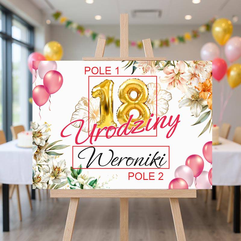 Tablica Powitalna z Imieniem na 18, 20, 30 Urodziny MD1375