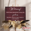 Umieszczona przy wejściu głównym do sali weselnej, ta tablica staje się doskonałą dekoracją, wprowadzając gości w wyjątkowy nastrój Waszego święta. Słowa "Witamy" stają się nie tylko powitaniem, ale także znakiem rozpoczęcia niezapomnianej podróży przez radosne chwile. Dodajcie wyjątkowy akcent już od pierwszych kroków gości, tworząc niepowtarzalną atmosferę, która pozostanie z Wami na zawsze.