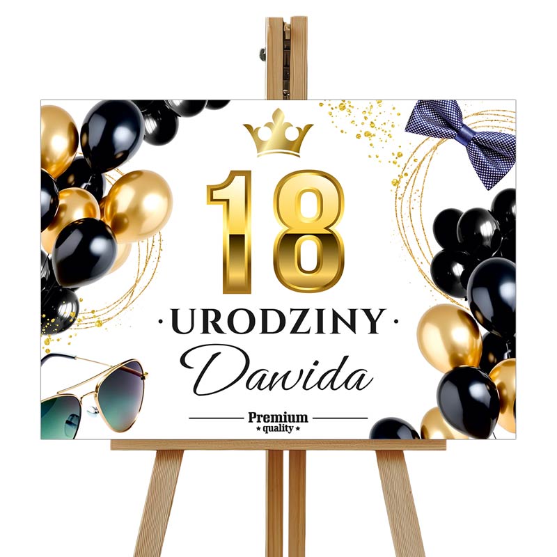 Nasza urodzinowa tablica powitalna sprawi, że jubilat poczuje się wyjątkowo. Goście poczują się oczekiwani. Kompozycja jest nowoczesna i elegancka. Podkreśla wagę momentu wejścia w dorosłość. Ta ozdoba powitalna to klucz do udanego startu imprezy. Nadaje ton całemu wydarzeniu. Inwestujesz w jakość i dbałość o szczegóły. Postaw plakat przy wejściu. Nikt go nie przeoczy.