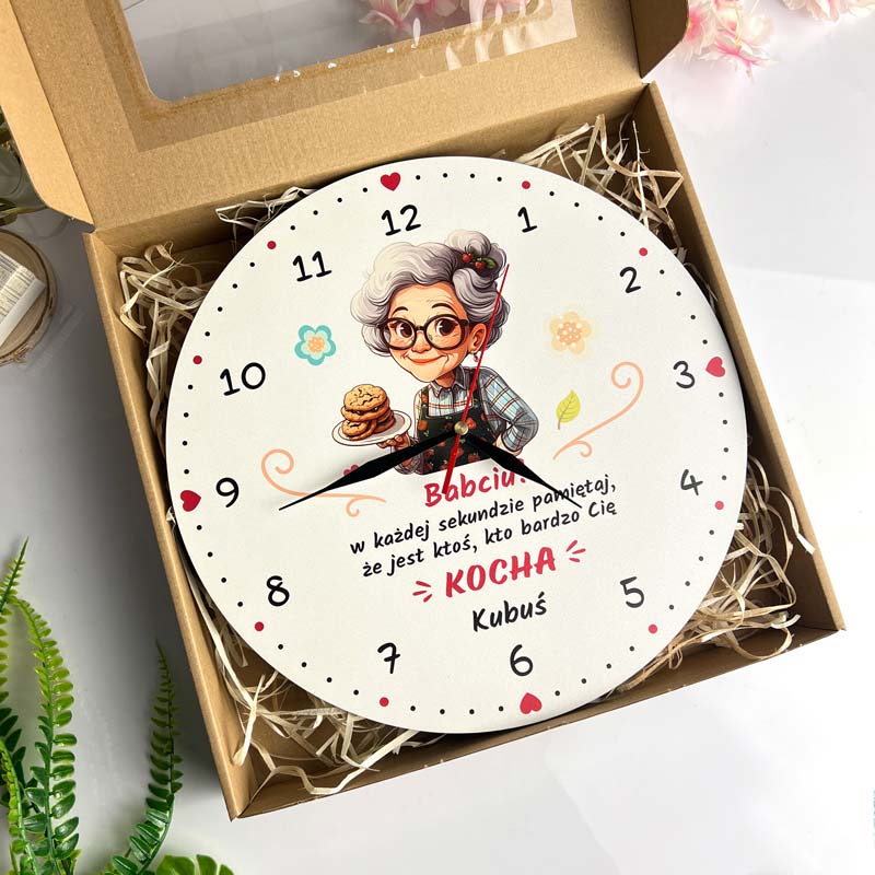To jednak nie koniec — nasz zegar jest również personalizowany. Możesz dodać imiona wnuków, co sprawi, że prezent na dzień babci i dziadka stanie się niepowtarzalny i wyjątkowy. Zegar z imionami wnuków to prawdziwa pamiątka, która każdego dnia przypomni o miłości i wspólnych chwilach. Spersonalizowany nadruk UV nadaje prezentowi dodatkową wartość emocjonalną, a wspomnienia uwiecznione na zegarze będą rozgrzewać serca dziadków.