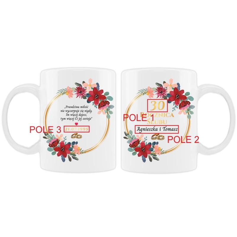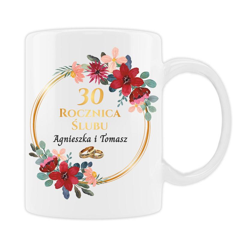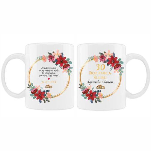 Kubki Rocznicowe z Personalizacją na 10, 20, 30, 40, 50 Rocznicę Ślubu z Czerwonymi Kwiatami