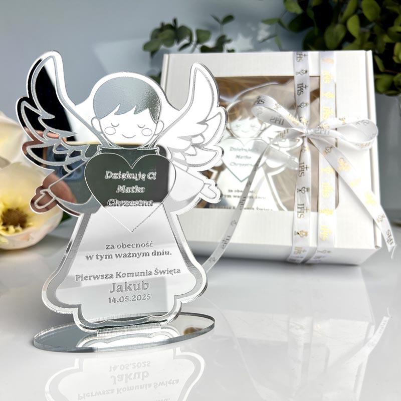 Zestaw podziękowania na Komunię – Aniołek dla Chrzestnych i Dziadków ♥ Idealny upominek dla Chrzestnych i Dziadków