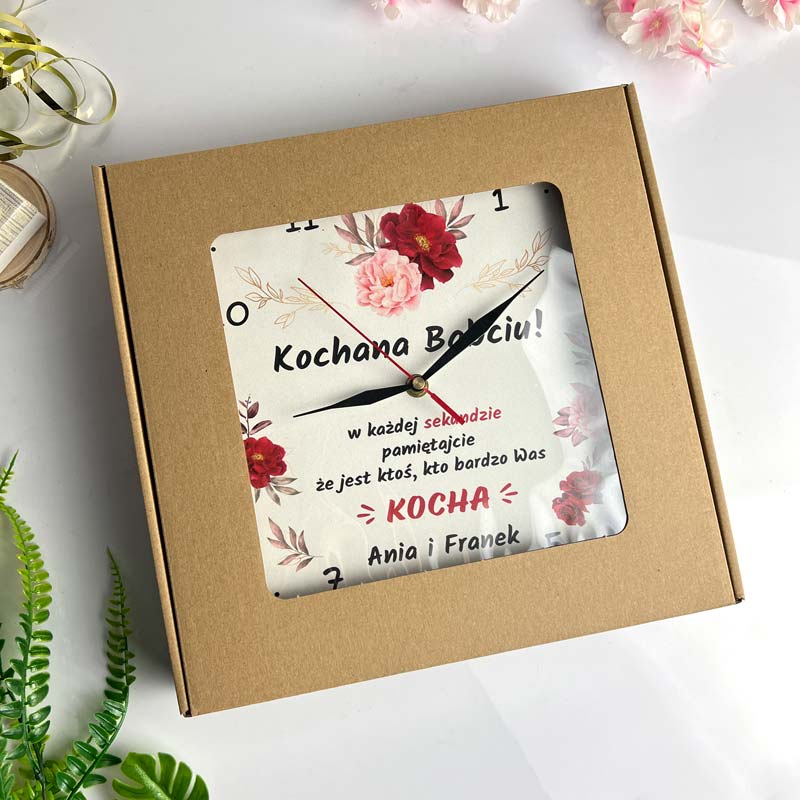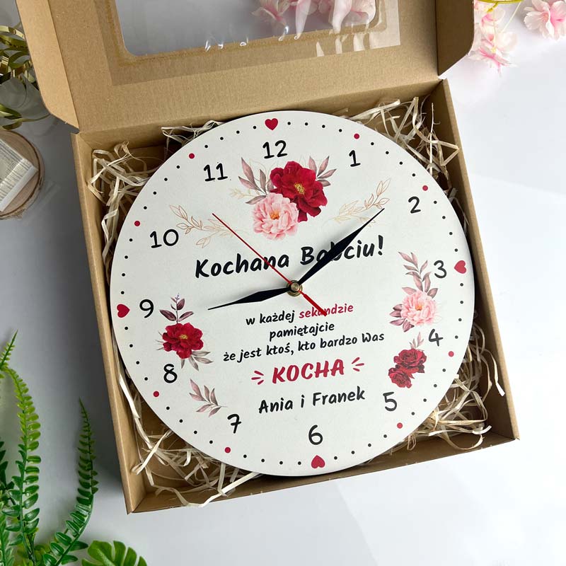 Zegar na ścianę z nadrukiem UV — idealny prezent w zestawie na Dzień Babci i Dzień Dziadka