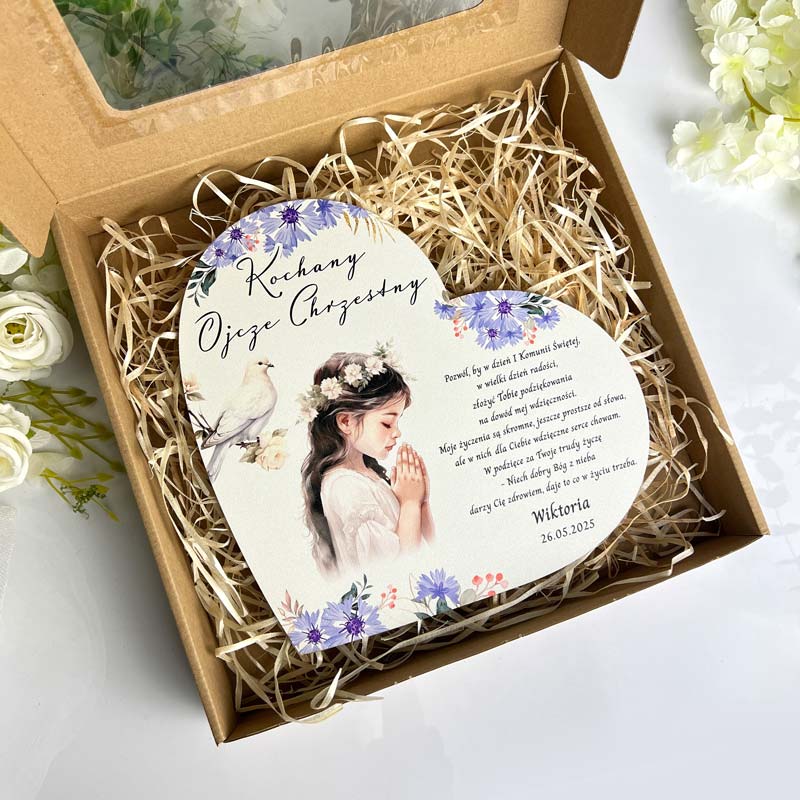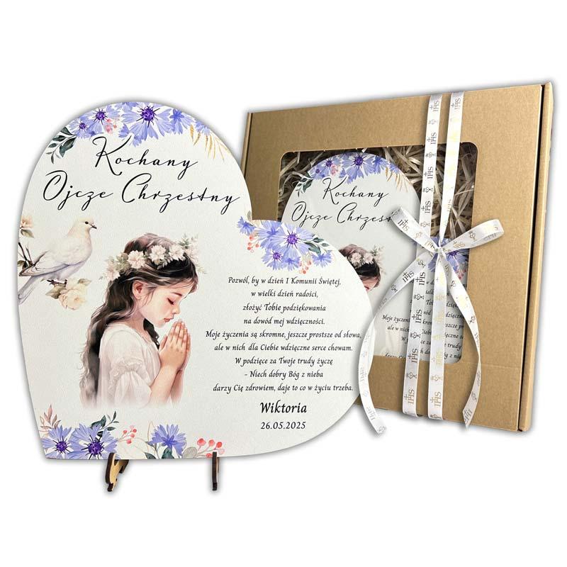 Zestaw Podziękowanie komunijne dla Chrzestnych i Dziadków Serce ♥ personalizowane serce z nadrukiem uv.