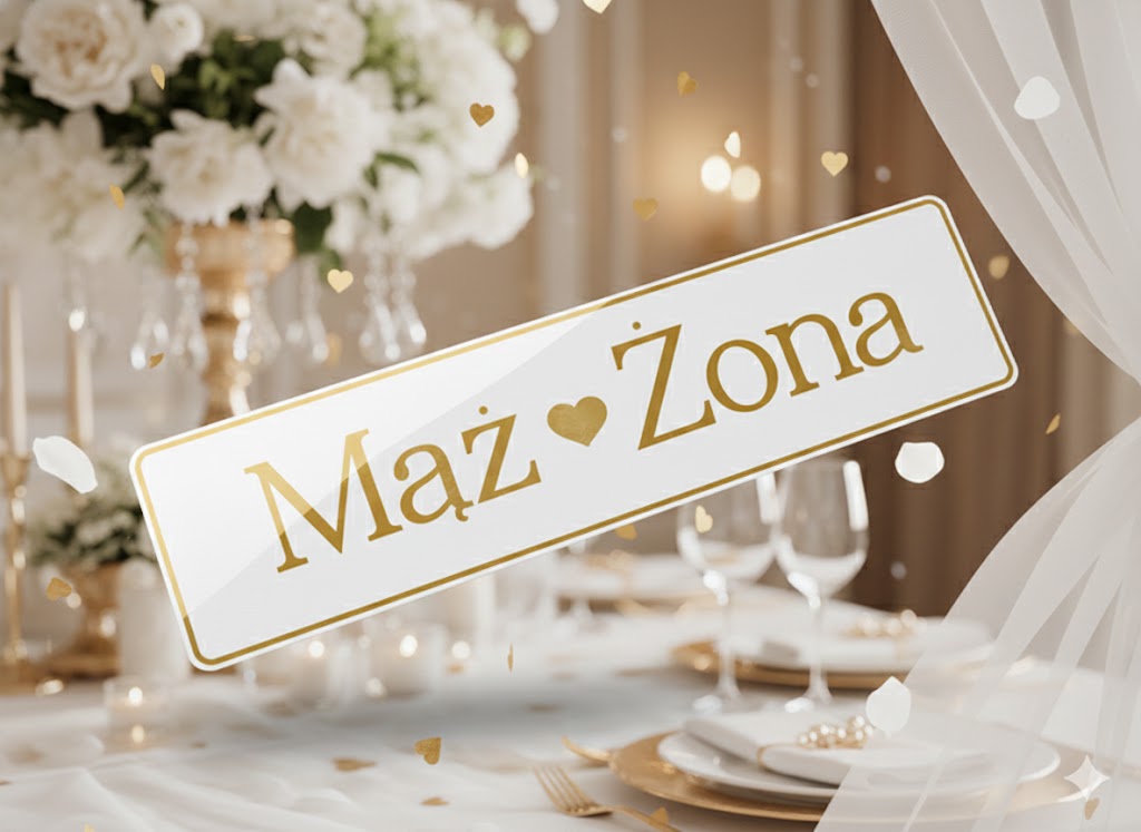 Złota Tablica Rejestracyjna Mąż & Żona – Wyjątkowa Pamiątka Miłości